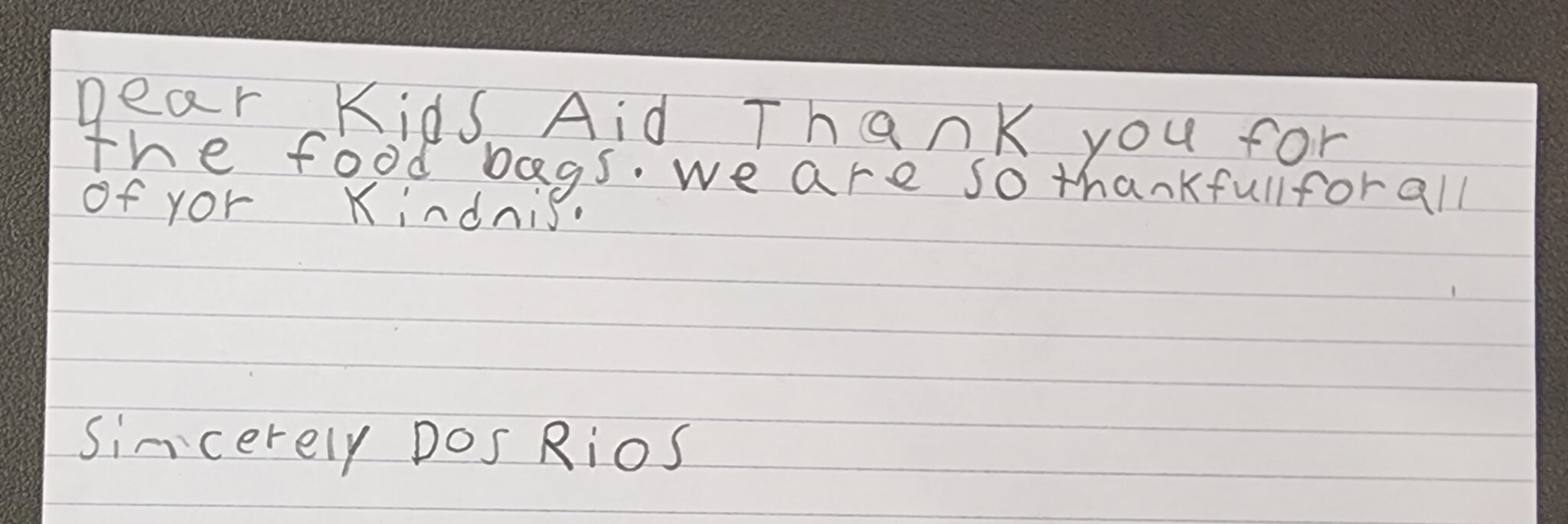 If you, your child, or your family has ever received a bag of food from Kids Aid, please give us your feedback. Help us continue to make our program a success!