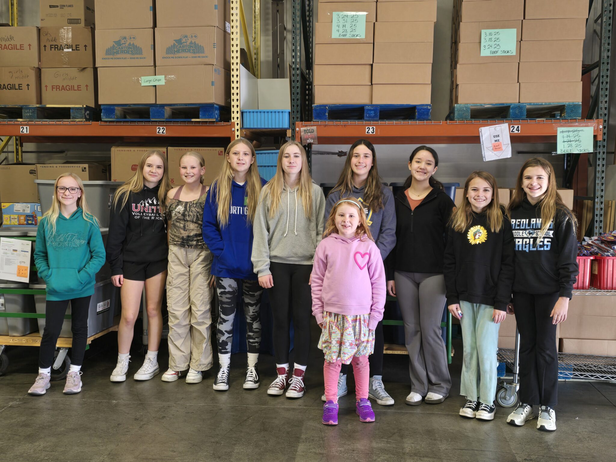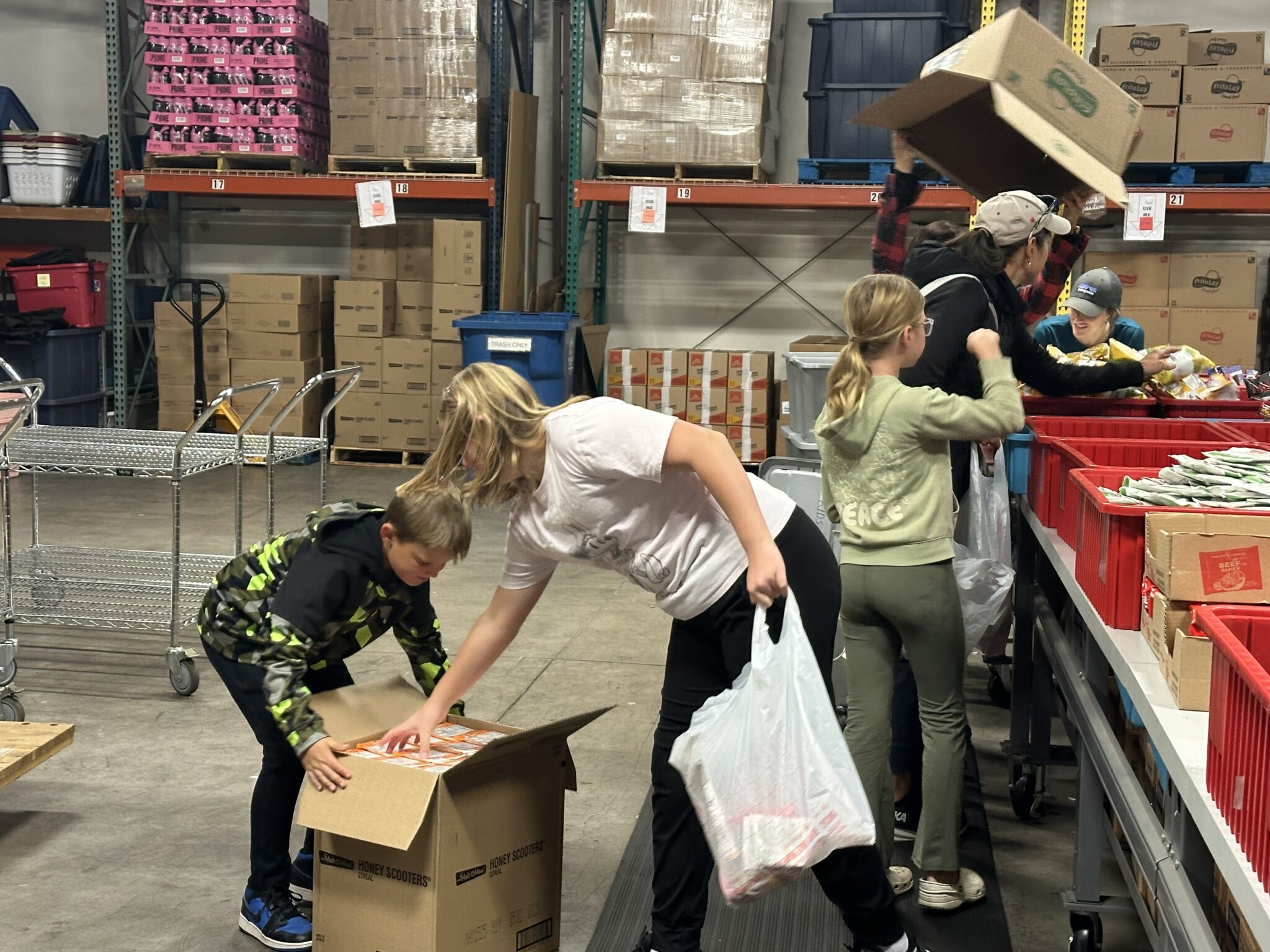 Kids Aid typically distributes 10-14 items in each bag—two to three dinner items, two to three lunch items, two to three breakfast items and some nutritious snacks. The items are selected and paired so children can easily prepare meals (e.g., canned chicken is paired with refried beans and tortillas to make burritos.) Also, to ensure that children who cannot access food at Kids Aid’s primary sites do not go hungry, Kids Aid delivers food to community agencies in strategic locations throughout Mesa County. Some volunteers deliver food directly to children’s homes if they know that transportation is a barrier to accessing food.